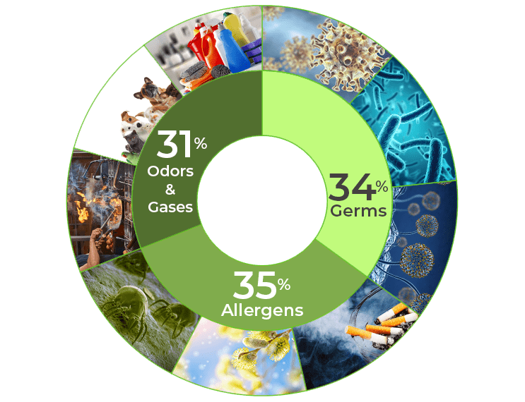 Did you know that because of today’s energy efficient construction, the air in our homes and workplaces is 2 to 5 times more polluted than the exterior air? According to the Centers for Disease Control and Prevention, there are several key factors that affect the air quality in our living and workspaces. From cooking and pet odors, to cleaning products and germs, we are breathing a number of particles that over time, make a significant impact on our health.